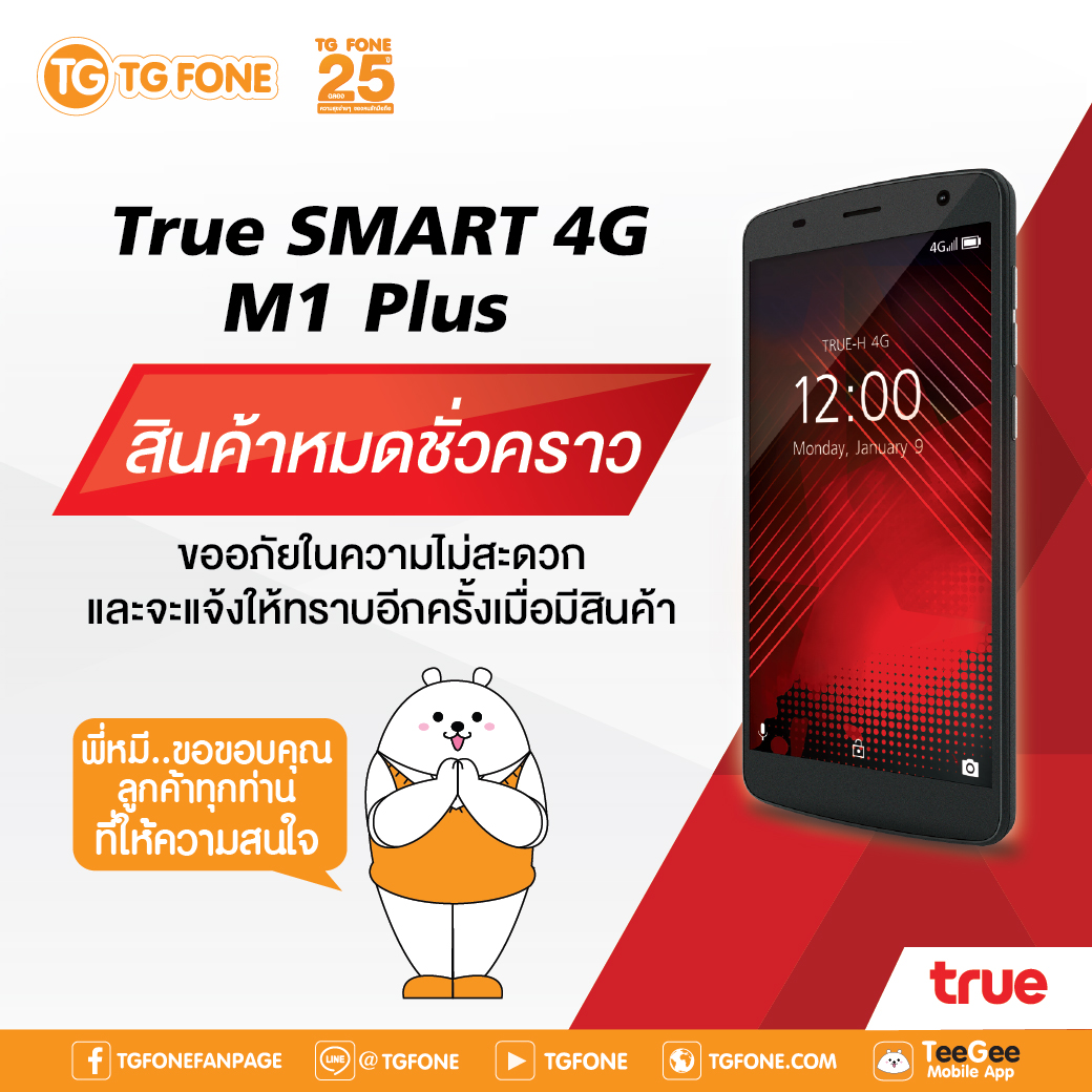 ขอขอบคุณที่สนใจ True Smart 4G M1 Plus ที่ TG FONE ขณะนี้สินค้าจำหน่ายหมดทุกสาขา