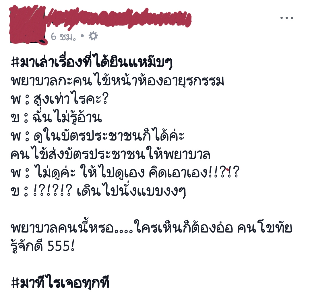 พยายาลคนนี้เค้าเป็นแบบนี้มานานแล้ว ไปทีไรเจอทุกครั้ง คนไปตรวจห้องอายุรกรรม จะรู้ดี