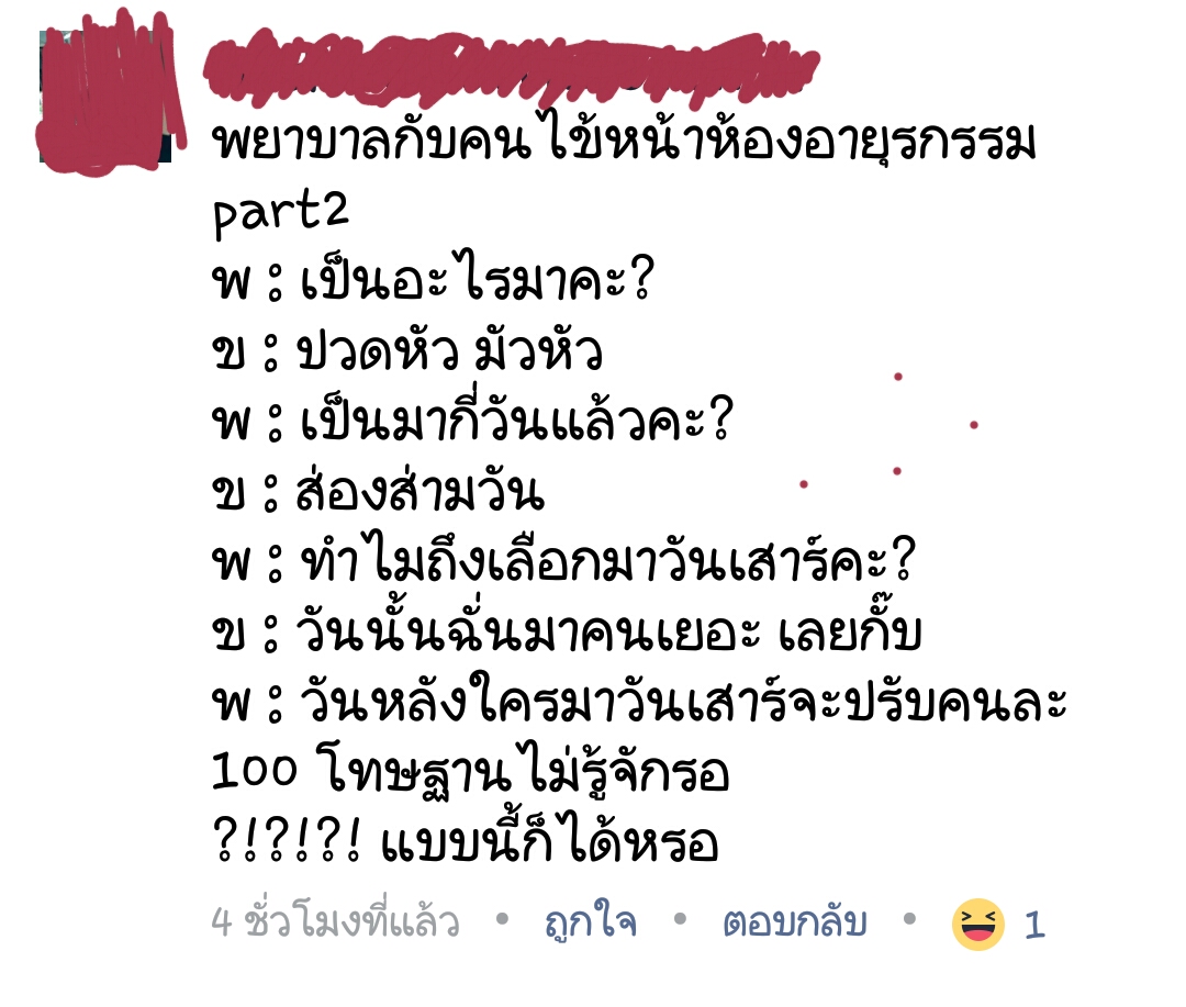 สักพักพยาบาลคนนี้ก็บ่นๆๆๆ ปนะมาณว่า อะไรๆก็โทษยากัน ไม่ได้ดูตัวเองกันละ บลาๆๆๆๆ ไปเรื่อยๆ
