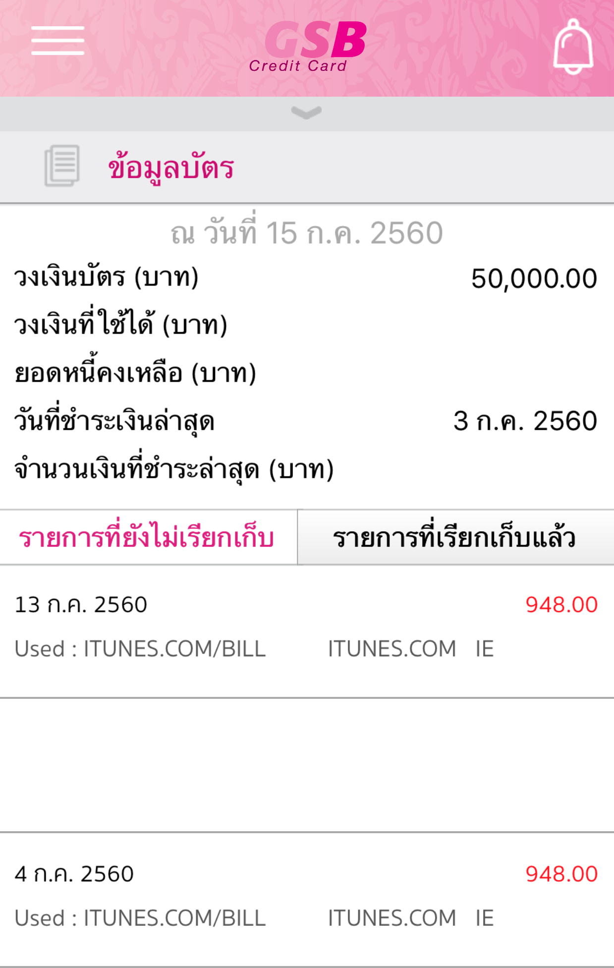Capture มาจาก App GSB Cradit Card