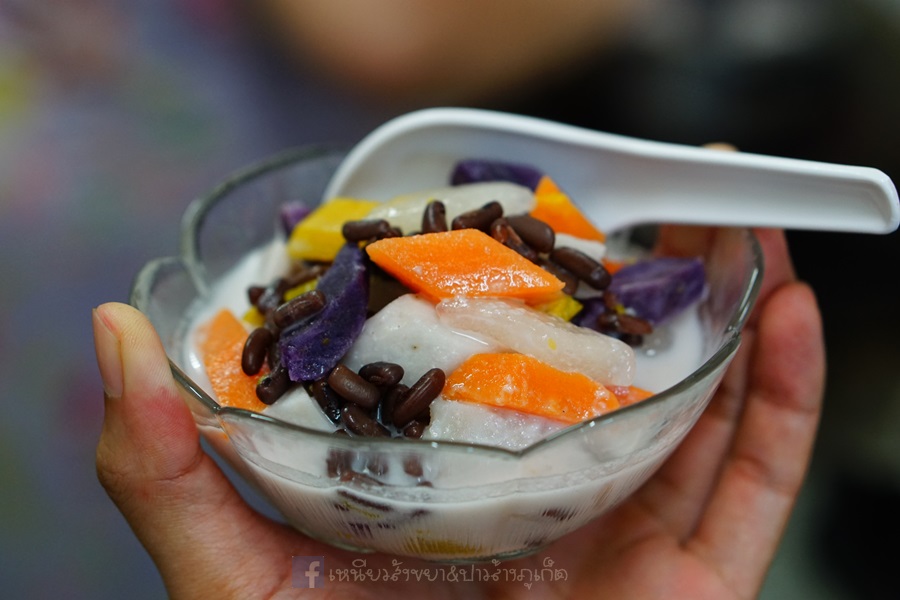 หัวมัน หัวบอน น้ำเต้า หวานในตัวกำลังดีเข้ากับน้ำกะทิที่หอมมัน เม็ดแป้งก็หนึบๆ ผมชอบมากเม็ดแป้ง ตอนเด็กๆ จะตักกินแต่เม็ดแป้ง มันอร่อยแบบบอกไม่ถูก