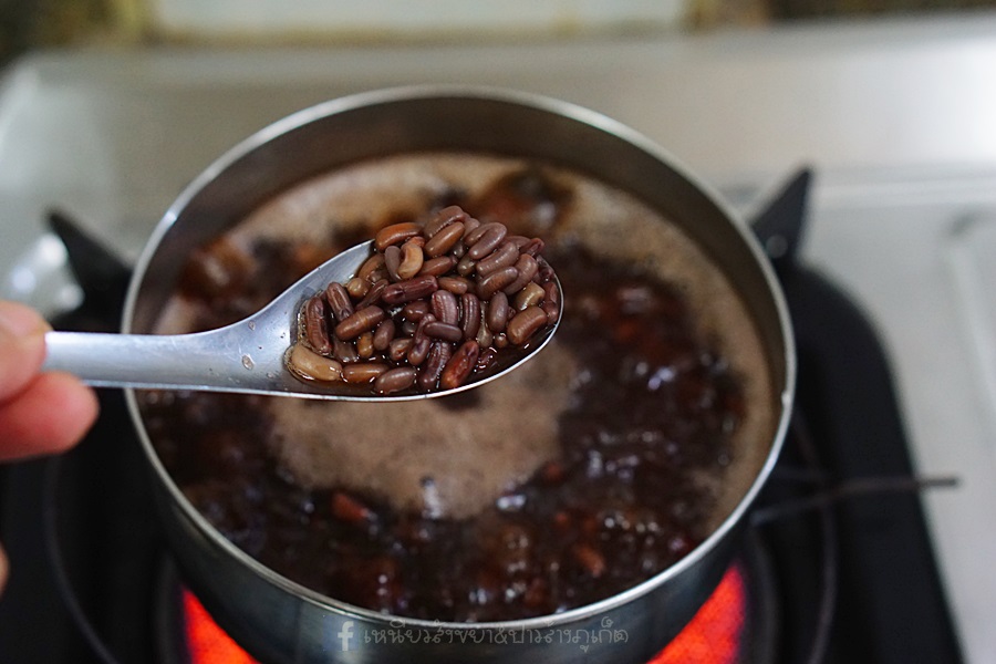 3.คนเบาๆ ให้พอร้อน อย่าให้แตกมัน ใจเย็นๆ จะได้กินแล้วครับ (ถ้าคนแรงไปมันจะไม่ใช่ต้มบวด อาจกลายเป็นโจ๊กนะครับ บอกก่อน)