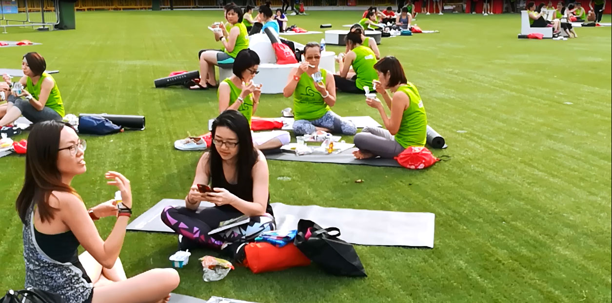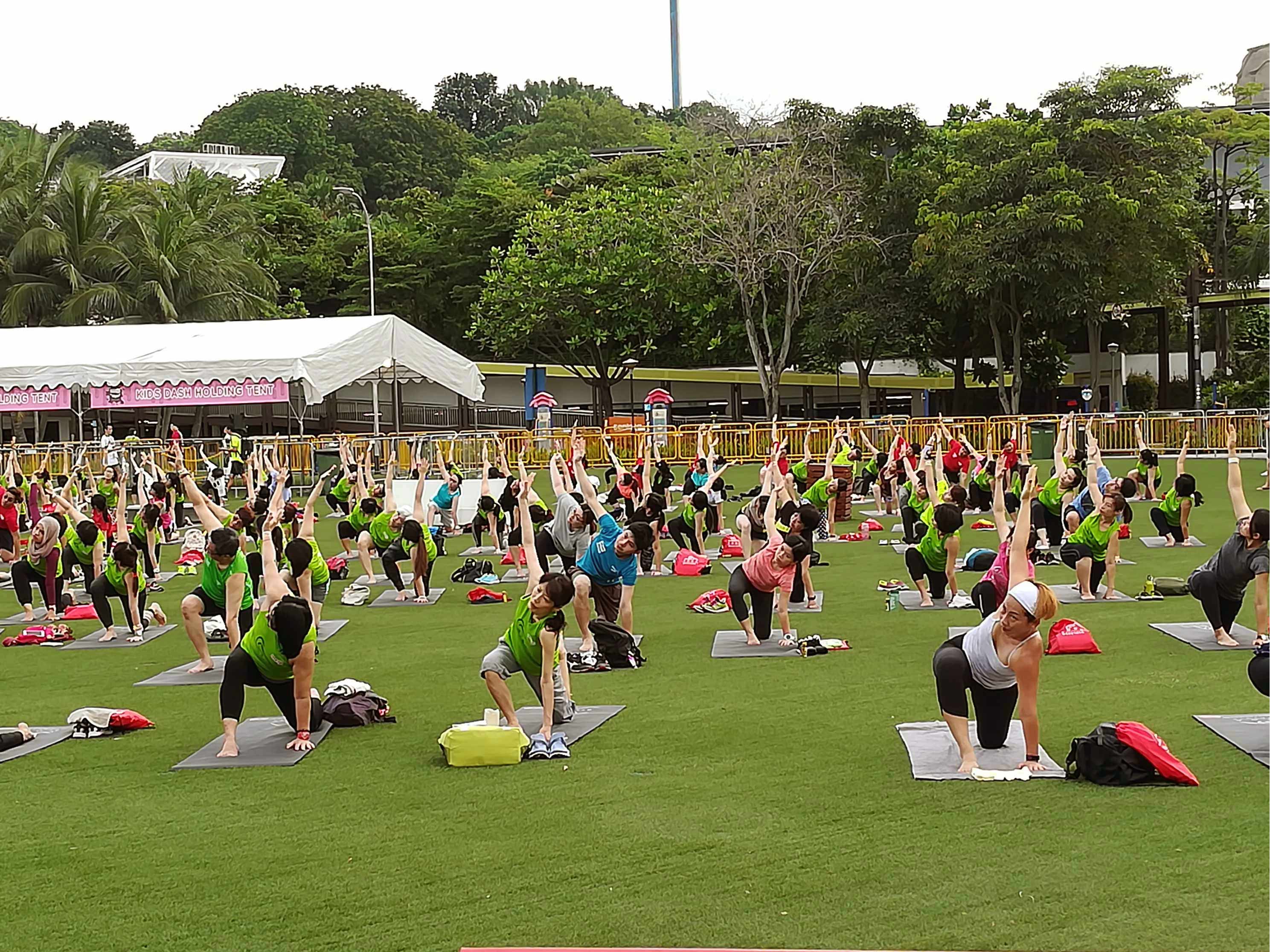 เฮฮาหน้า Backdrop พวกเจ๊ๆสิงคโปร์ชอบกิจกรรมออกกำลังกายมาก ดูเขาสนุก เราก็สนุกไปด้วยนะ