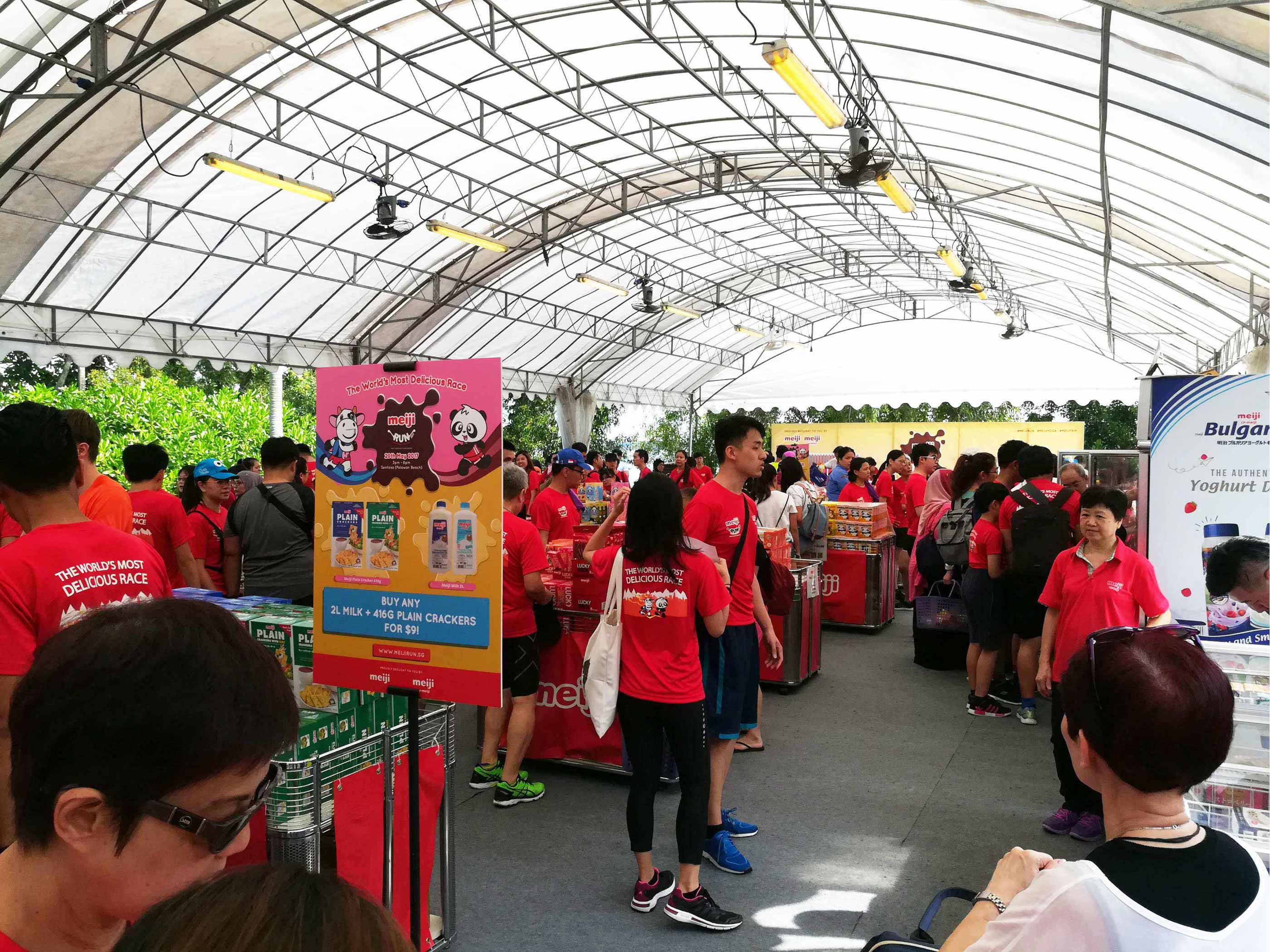 นอกจากแจกแล้ว ก็ยังมีเปิด booth ขายสินค้าเมจิ ทั้งขนม นม ไอศครีมจากญี่ปุ่น ด้วย