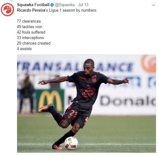 ตัวแทนวอร์คเกอร์ ข่าวที่มาแรงมากๆ ก็คือ Ricardo Pereira จากนีส เป็นตัวเลือกแรกที่เรามองไว้เพื่อมาแทนวอร์คเกอร์ (Sky Sport)