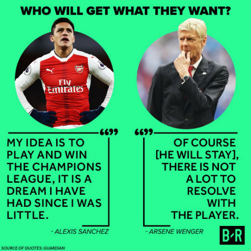 - อเล็กซิส ชานเซส " ผมต้องการเล่นในแชมป์เปี้ยนลีค การตัดสินใจไม่ได้ขึ้นอยู่ที่ผม ผมต้องรออาร์เซนอลก่อน " (Source: @RadioSportChile)