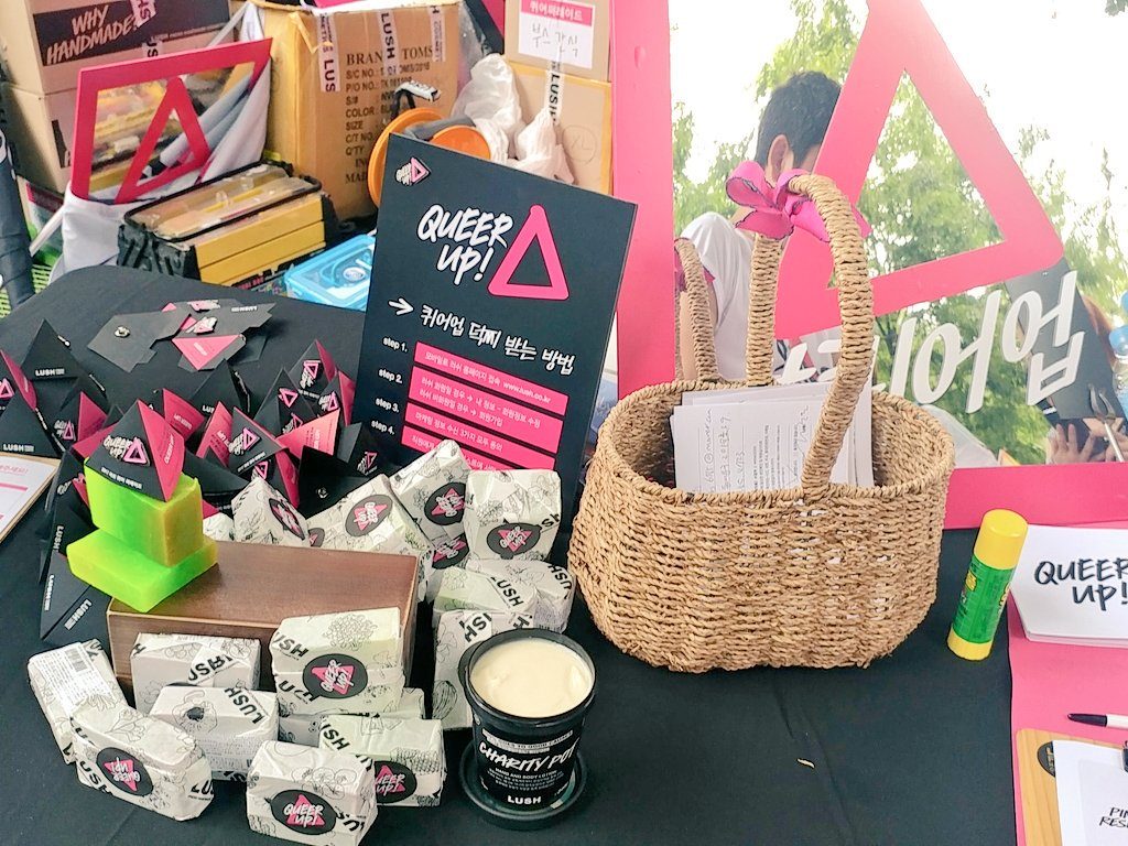 โดย “Queer Up” แคมเปญนั้นแท้จริงแล้วริเริ่มโดยเครื่องสำอางแบรนด์ LUSH ที่ได้เริ่มโดยผู้สนใจเข้าร่วมได้ที่ตั้งบูชจัดแสดง