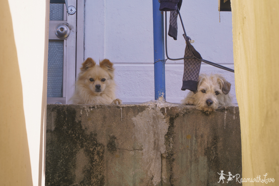 หมู่บ้านนี้ไม่ใช่หมู่บ้านจำลอง แต่มีผู้คนอาศัยอยู่จริงๆ รวมทั้งน้องหมา 2 ตัวนี้ด้วย ไม่ใช่ของประกอบฉากนะ เพราะเห่าทักทายนักท่องเที่ยวอยู่ตลอดเวลา