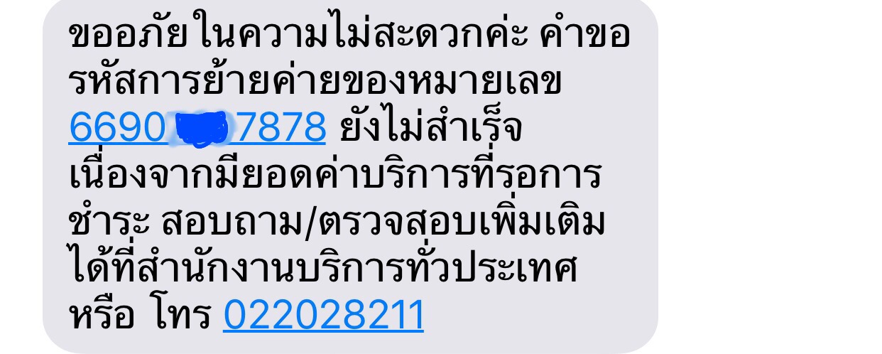 คือได้กดขอรหัสย้ายค่ายออกจาก true แต่ไม่ได้รับข้อความ รบกวน true ช่วยตรวจสอบหน่อยครับ
