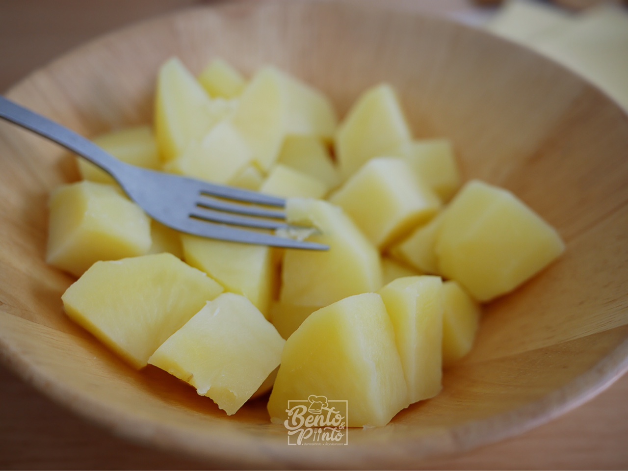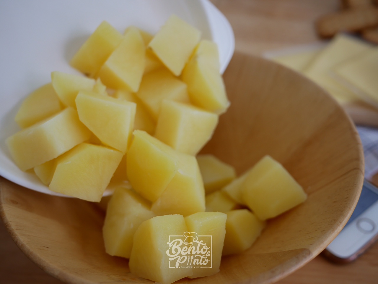 1 นำมันฝรั่งไปต้มให้สุก หลังจากนั้นนำมาบดให้ละเอียด