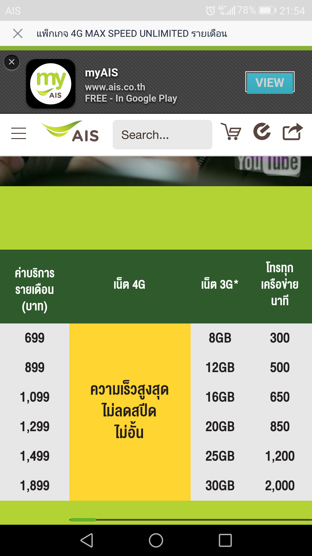 สอบถาม Package 4G Max Speed Unlimited ค่ะ
