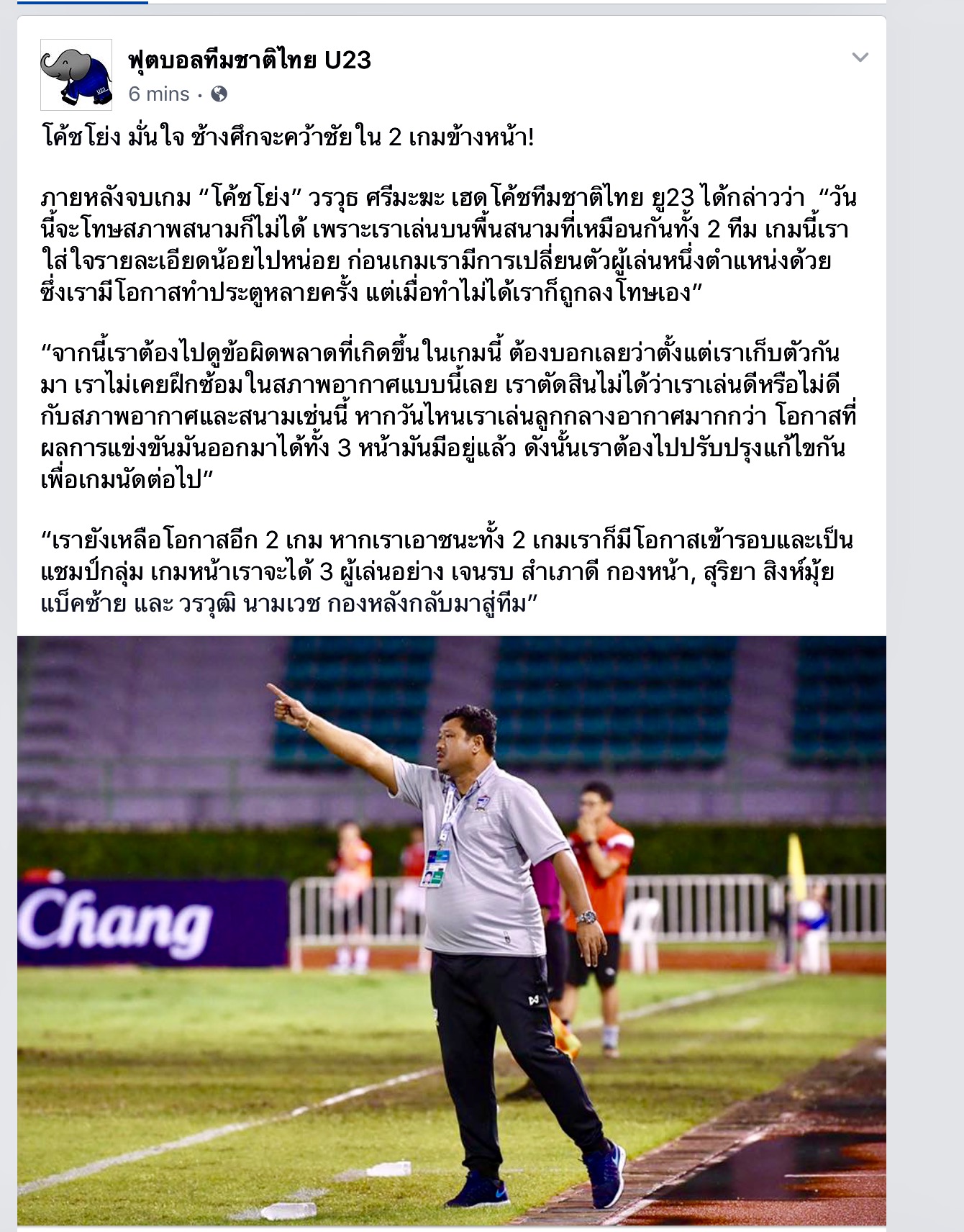 [ข่าว] โค้ชโย่งมั่นใจจะเก็บคะแนนอีกสองนัดข้างหน้าให้ได้ U23