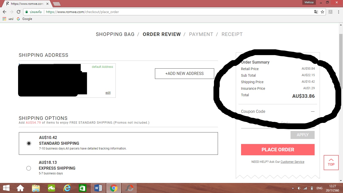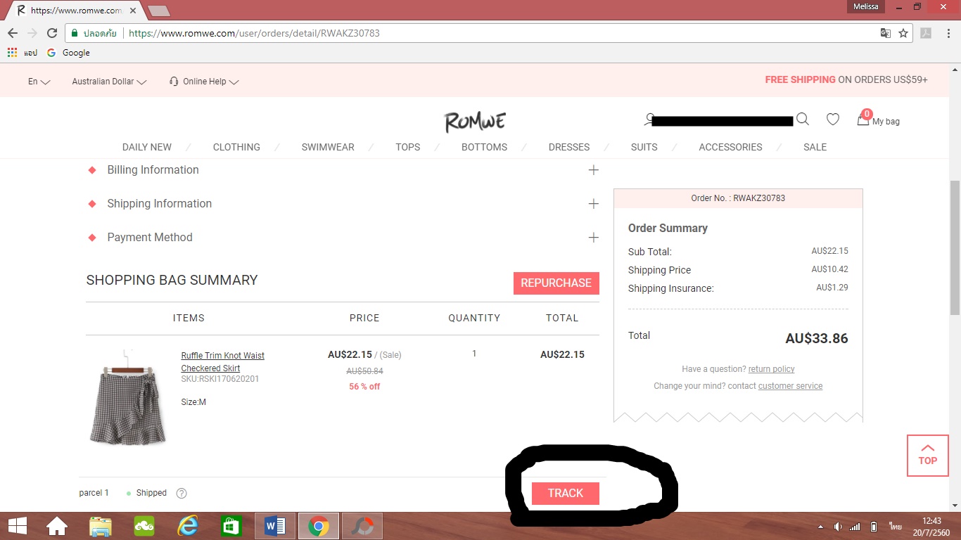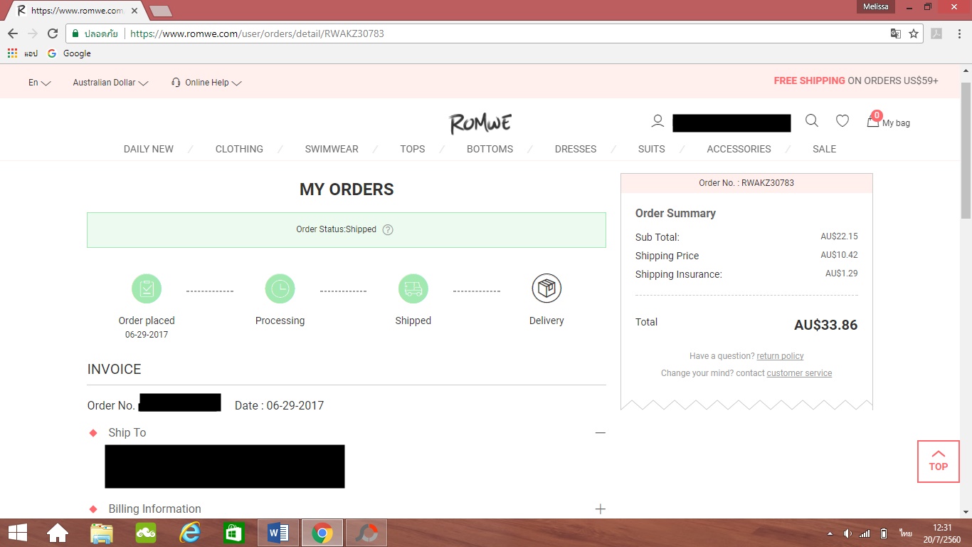 เมื่อหลายอาทิตย์ก่อน จขกท.ได้ทำการสั่งสินค้าจาก Romwe.com