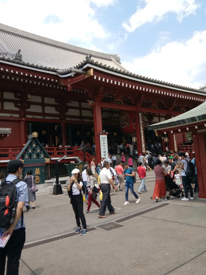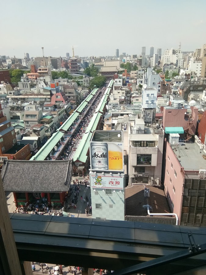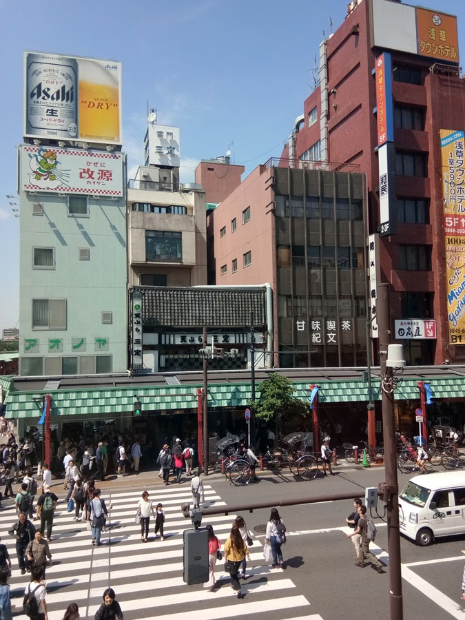 เดินทางกันต่อเราจะไปวัดอาสากุสะ ตอนนี้เราอยู่ที่หน้าวัดคะ มองออกไปเป็นถนนที่เราเดินมาจากสถานีรถไฟ