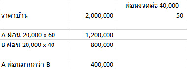 A และ B ช่วยกันผ่อนบ้าน คนล่ะ 20,000 บาท (2 x 20,000 = 40,000)