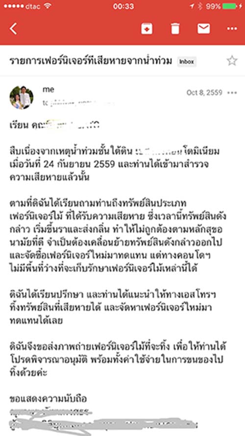 - ทรัพย์สินเสียหายจากน้ำที่ม่วมเข้ามาในคอนโด