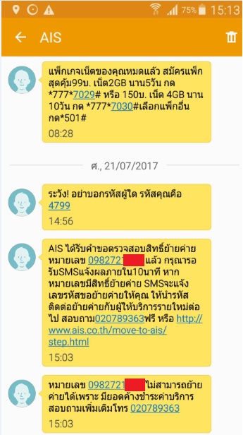 พอดีจะย้ายค่าย จาก AIS ไปเป็น TRUE แต่ระบบ AIS แจ้งกลับมาว่า.....( ระบบเติมเงิน )