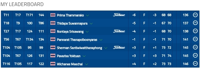สรุปรวมจากการดู Leaderboard เป็นโปรพริม พริมา ธรรมรักษ์ ทำได้เท่ากันทั้ง 2 วัน วันละ -3 รวม -6