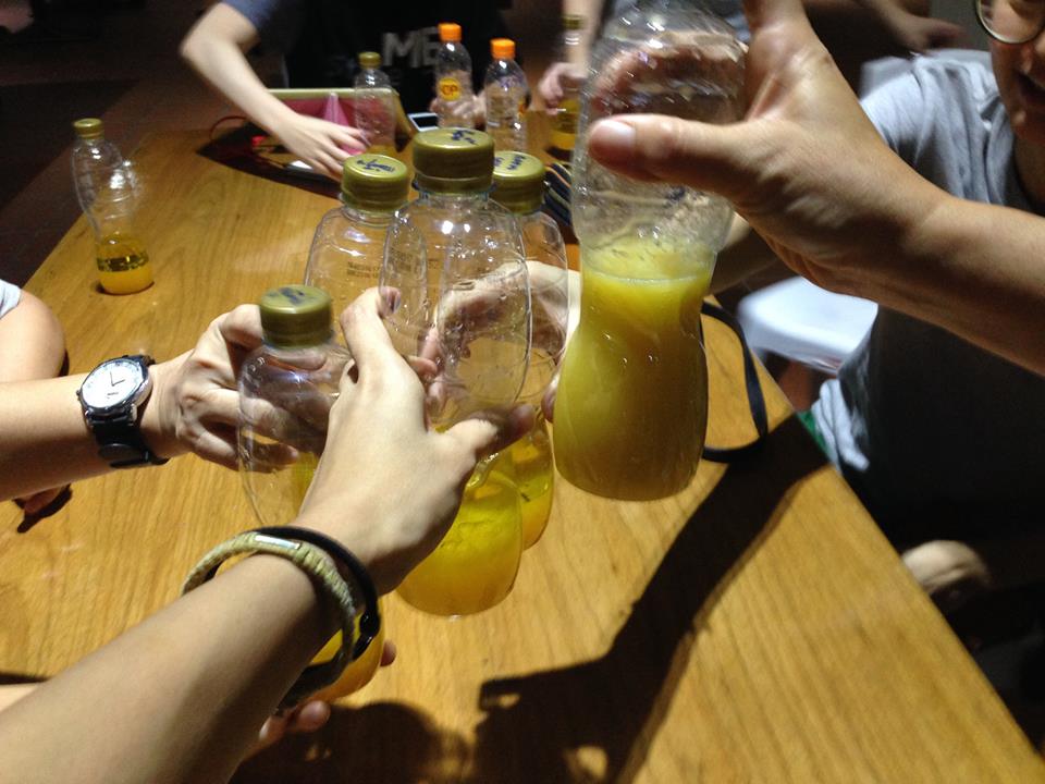 หลังจากนั้น ก็กินน้ำผลไม้รวมที่วิทยากรเตรียมให้กรึ๊บนึง และดื่มน้ำด่างรัวๆ ไม่ให้ตัวเองขาดน้ำ เออ ลืมบอกไป เวลามาดีท็อกซ์เค้าให้เรางดอาหารนะคะ จะกินได้แต่น้ำ ซึ่งเค้าจะเหมือนๆกึ่งบังคับให้เรากินน้ำเยอะๆ เพื่อไม่ให้ร่างกายขาดน้ำค่ะ แต่น้ำที่นี่คืออร่อย มีหลากหลายตั้งแต่น้ำส้ม มะพร้าว(ลูกใหญ่มาก) น้ำต้มยำ น้ำมะขาม จริงๆไม่แย่เลย นึกว่าจะหิว แต่พอเวลาที่เรากินน้ำเยอะๆจะจุกแล้วลืมความหิวไปเองค่ะ 555  หลังจากนั้น กิจกรรมยามดึกก็มีสวดมนต์ก่อนนอน และอธิบายสิ่งที่จะเจอในวัดถัดไปให้ฟังคร่าวๆ
