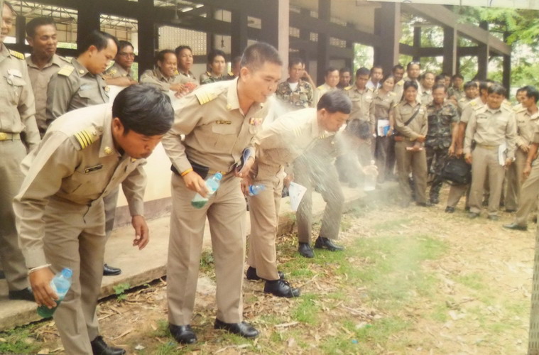 ตัดหญ้าแล้วเสร็จ แล้วฉีดยาฆ่าหญ้า