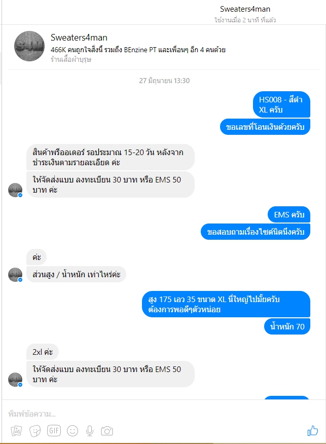 ตามหัวข้อเลยครับ พอดีสนใจเสื้อผ้าออนไลน์จากเว็บเจ้านึง ก็เลยสอบถามและก็ตกลงสั่งซื้อเป็นที่เรียบร้อย