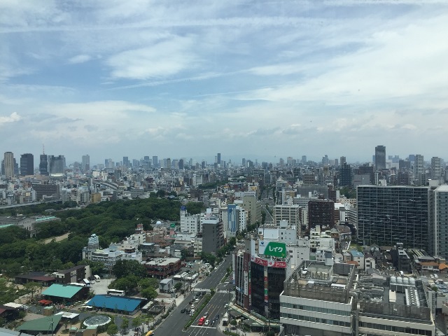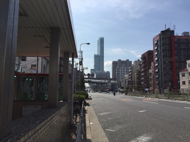 เมื่อผมออกจากสถานีรถไฟ Dobutsuen Mae ทางออก 3 เดินขึ้นบันไดมาเจอสี่แยกใหญ่ หันมองทางซ้าย เห็นตึก Abeno Harukas ตึกสูงสีฟ้าตั้งตระหง่าน เดินไปทางนั้นอีกนิดก็จะเจอโรงแรมครับ ด้านหน้ามีที่นั่งสำหรับสูบบุหรี่ ทางซ้ายมือเป็นที่จอดจักรยานยืมฟรี มีตู้ขายน้ำ และตู้ขายบุหรี่หยอดเหรียญ
