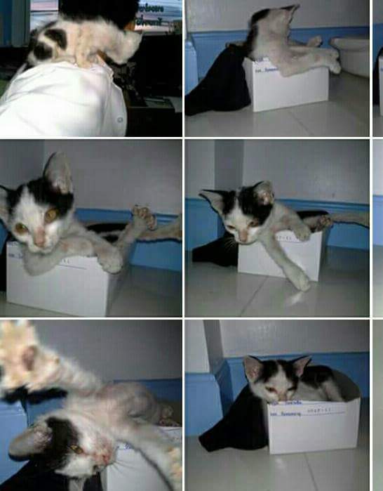 เรื่องมันเป็นแบบนี้ค่ะทุกคน เราเห็นห้องข้างๆ 2 ตัว ตัวนึงก็วิ่งมาหาแต่อีกตัวนอนอย่างเดียวก็สงสัย เลยถามคุณยายว่ามันเป็นอะไรยายบอกแมวกัดขามัน ทายาให้ก็ไม่หาย ให้กินอะไรก็ไม่กินก็ไม่กิน กินแต่น้ำ เราก็ไ