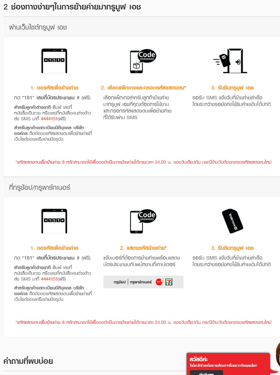 ถามวิธีการย้ายค่ายมายัง Truemove H ครับ
