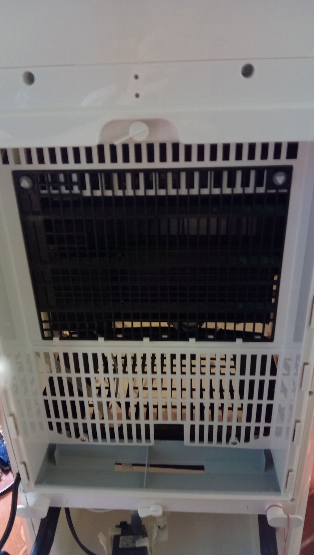 สภาพด้านในเมื่อถอดออกมาเรียบร้อยแล้ว เนื่องจากรุ่นนี้ตัวครอบใบพัดดูดอากาศนั้นครอบเป็นครึ่งวงกลมไปเลยจึงทำให้ทิศทางการดูดอากาศมาจากด้านล่างเพียงทิศทางเดียว