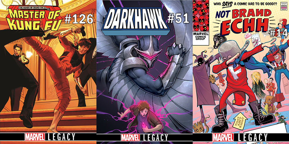 พร้อมกับหัวเรื่องเก่าที่ทยอยเข้าสู่ยุค Legacy เช่น Thanos, She-Hulk (มั้งนะ) และ Doctor Strange (อาจจะมีอีก) ส่วนหัวเรื่อง Immortal Iron Fist ที่เคยโฆษณาว่าจะมาในยุค NOW! สรุปว่าเปลี่ยนเป็นขายเฉพาะรูปแบบดิจิตอลเท่านั้น ไม่มีปรินท์ขาย เป็นมินิซีรีย์ 6 ตอนจบ