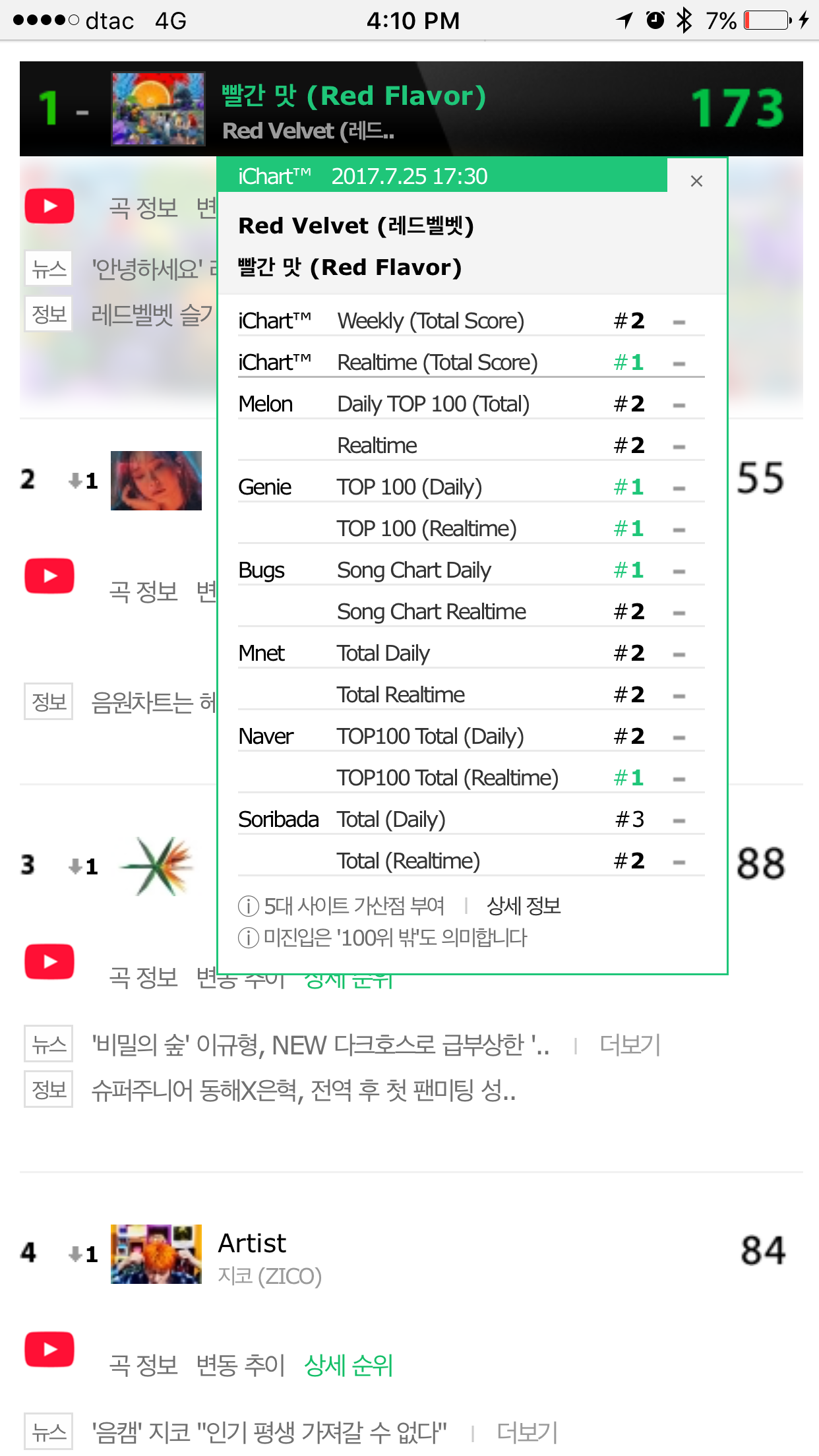 Red Velvet 2 เดือนแล้วกับ red flavor ยังคงอยู่ใน top 10 real-time ของทุกชาร์ตเพลงในเกาหลี
