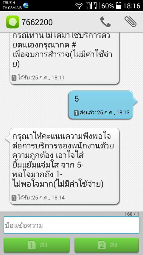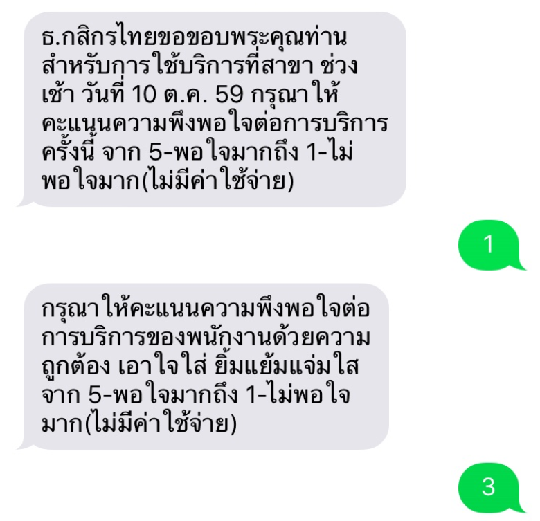 SMS ตอบแบบสอบถามการใช้บริการ ธนาคารกสิกรไทย