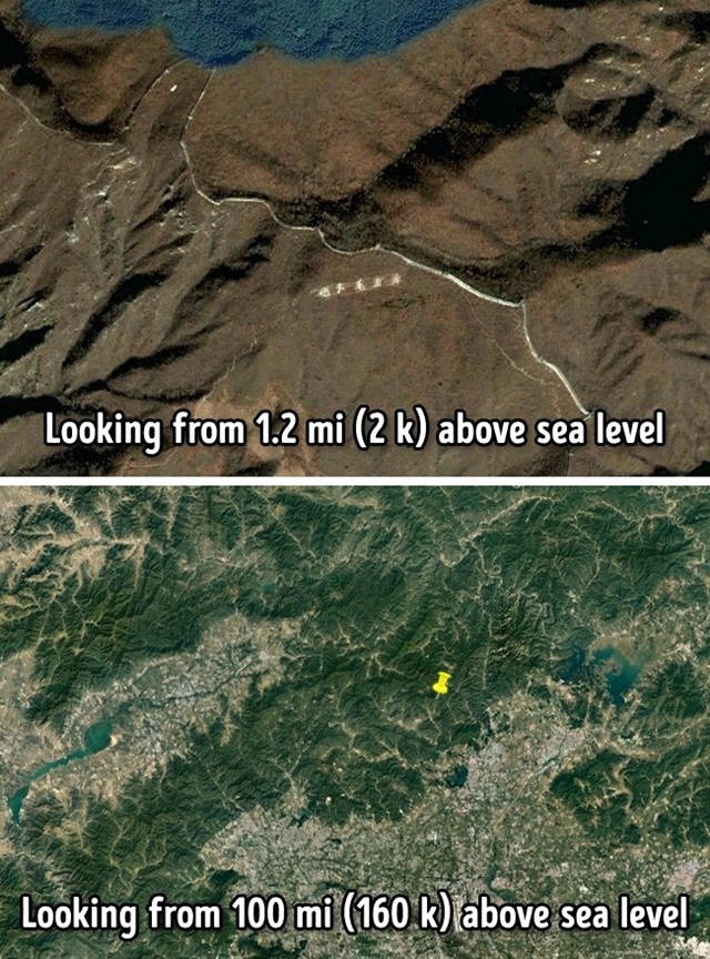 ความจริง กำแพงเมืองจีน มองเห็นได้จากบนท้องฟ้าไม่เกิน 2 กม.