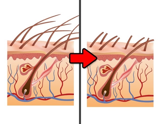 ความจริง เมื่อเราโกนขน ส่วนที่เหลืออยู่คือส่วนกลางของขนซึ่งทื่อและแข็ง ทำให้เรารู้สึกเหมือนมันหนาขึ้น