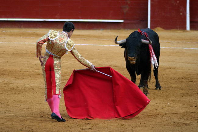 กระทิงไม่สนใจสีแดง จริงๆ แล้วพวกมันแทบจะแยกความแตกต่างระหว่างสีไม่ได้ด้วยซ้ำไป แต่สิ่งที่ยั่วยุมันให้พุ่งเข้าใส่ก็คือท่าทางการเคลื่อนไหวของนักสู้วัวกระทิงต่างหาก