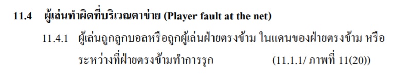 กฏข้อที่ว่าเป็นกฏวอลเลย์บอลข้อ 11.4.1 ว่าด้วยการทำผิดกติกาที่บริเวณตาข่าย