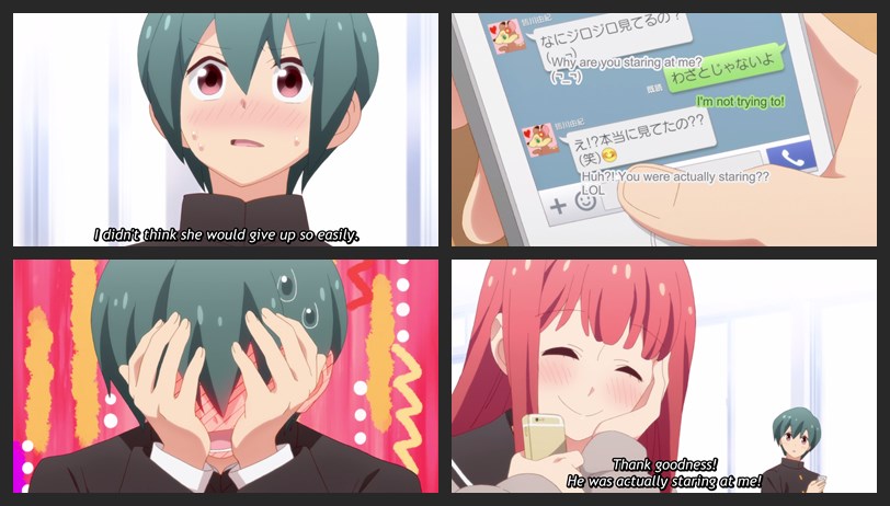 สาวเลยแกล้งงอน บอกว่าชั้นเลิกสนใจแล้ว.....เดินไปนั่งหันหน้าไปอีกทางที่โต๊ะ