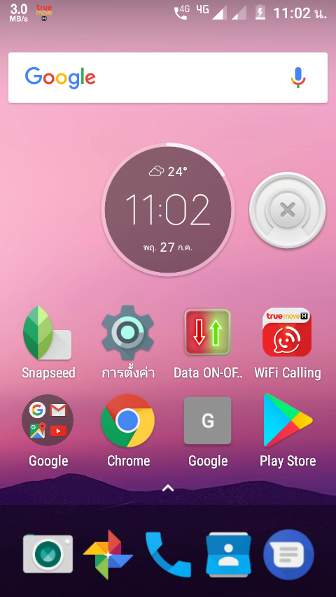 จึงเอาซิมมาใส่ moto เช่นเดิม และก็ได้มีเครื่องหมาย โทรศัพท์กับเลข4 ขึ้นที่แถบบน