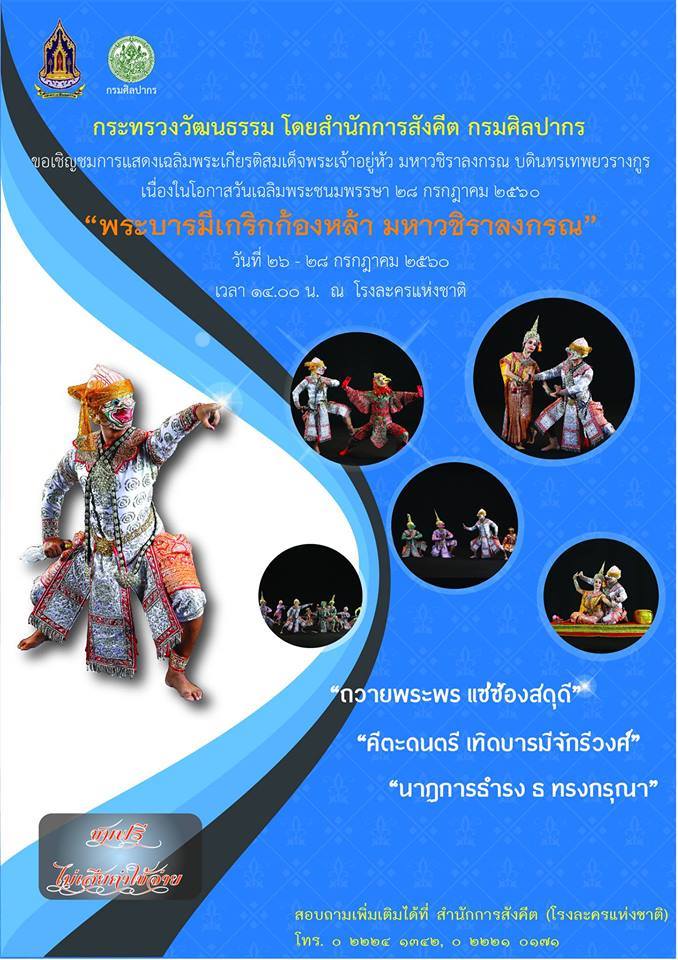 กรมศิลปากร ขอเชิญชมโขนเฉลิมพระเกียรติ "พระบารมีเกริกก้องหล้า มหาวชิราลงกรณ"