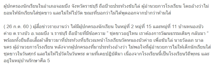 ผู้ปกครองเดือด ผอ.รร.ไม่ให้เด็กใส่ชุดขาววันศุกร์-ไม่ให้ไปวัดวันพระ