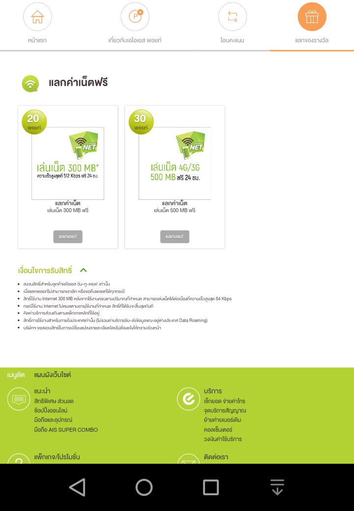 แนะนำใครที่มีคะแนนจากเอไอเอส พอยท์ ที่เหลืออยู่นำมาใช้สิทธิ์กันได้นะครับ ผมพอมีอยู่บ้างก็ทำการแลกสิทธิ์ไปบ้างแล้วเป็นอินเตอร์ความเร็ว500เมก