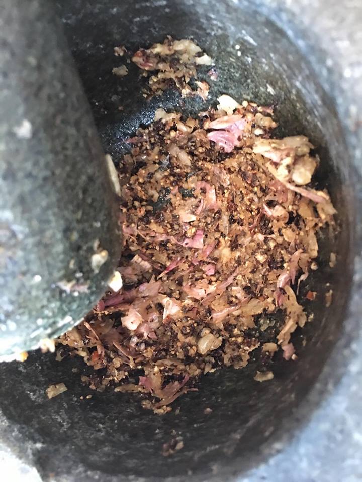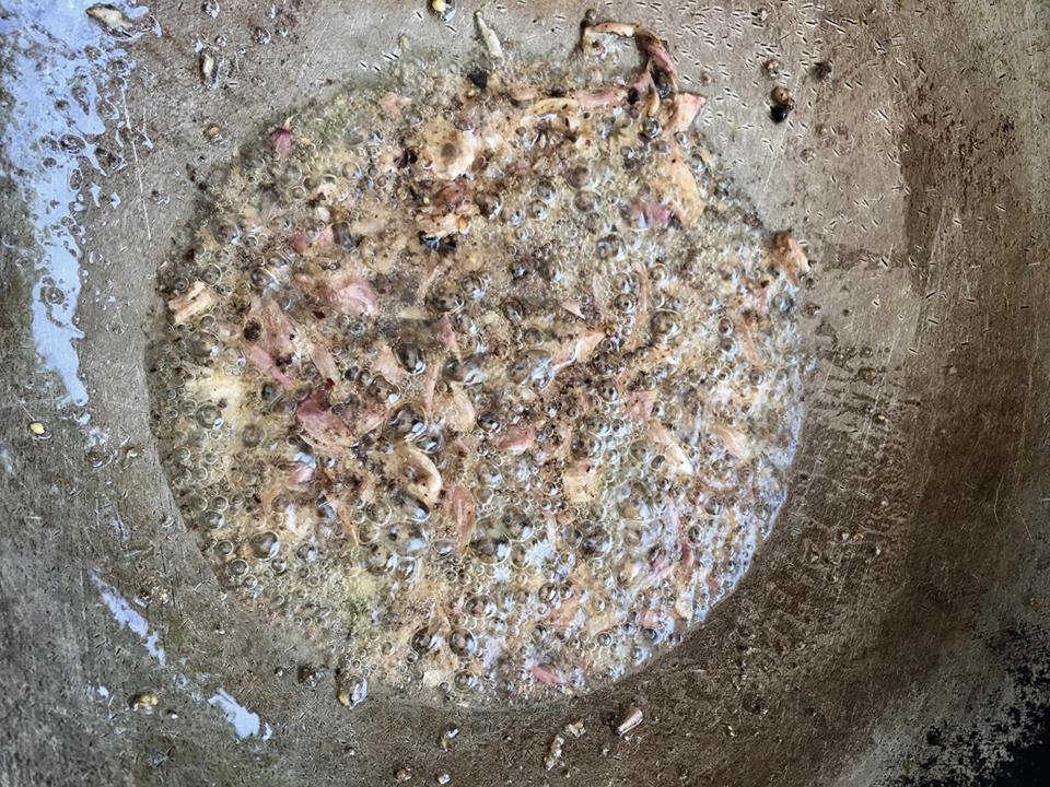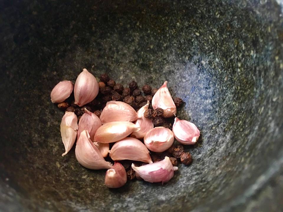 - น้ำกระเทียมพริกไทยลงไปผัดกับน้ำมัน (หูยย..กลิ่นหอมเชียว)