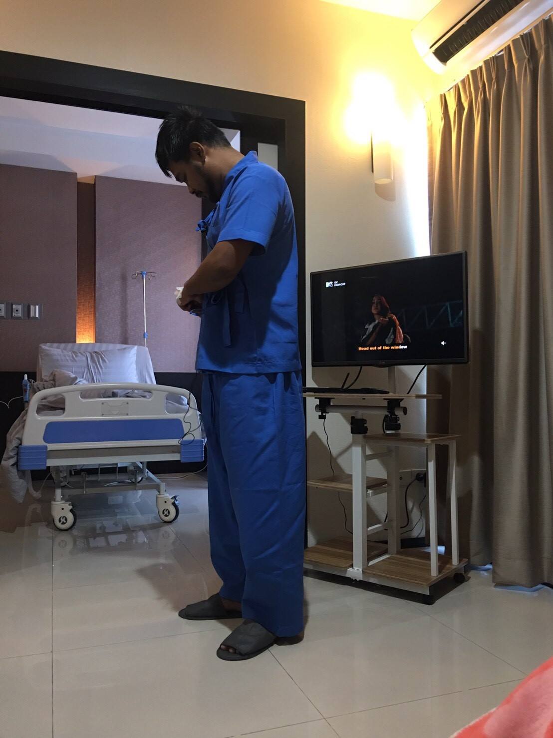 มาถึงวันผ่าตัด หมอให้งดน้ำ งดอาหารก่อนทำการผ่าตัด 8 ชั่วโมง และนอนที่ห้องพักที่โรงพยาบาลก่อนถึงเวลาเข้าห้องผ่าตัด