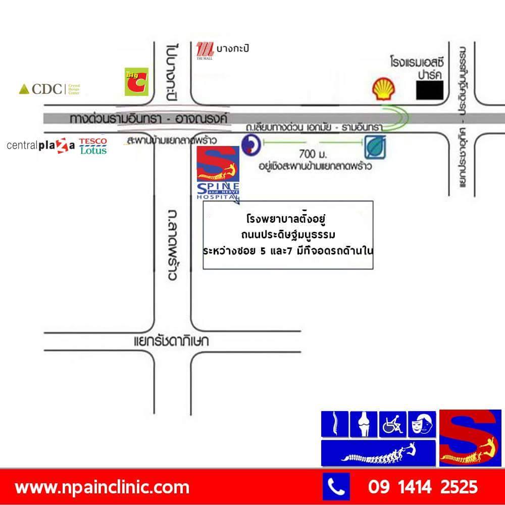 ผมอยากขอบคุณ คุณหมอและทีมงาน ที่ดูแลและต้อนรับเป็นอย่างดีตั้งแต่เริ่มแรกจนถึงวันผ่าตัดเสร็จ และขอบคุณที่ทำให้ผมเหมือนมีชีวิตใหม่ ที่สามารถกลับมาใช้ชีวิตได้ปกติ เหมือนเดิม ขอบคุณ Npain Clinic /S spine Hospital มากครับ ส่วนใครสนใจ อยากจะเข้าไปปรึกษาอาการ หรือพบคุณหมอ ไปตามแผนที่นี้ได้เลยครับ และติดต่อตามนี้ได้เลย