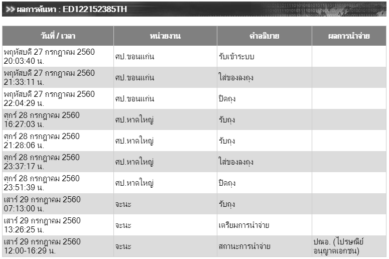 ไปรษณีย์ขึ้นผลการนำจ่ายแบบนี้ คืออะไรครับ?