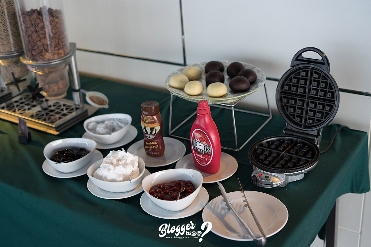 มีเครื่องทำวาฟเฟิลด้วยอะ คือเก๋ ๆ มากมาย ถ้าทำไม่เป็น ก็เรียกน้องพนักงานมาช่วยแนะนำได้นะ