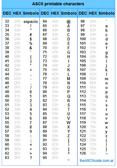ตารางรหัส ascii ที่จำเป็นสำหรับอักษรอังกฤษ ครับ