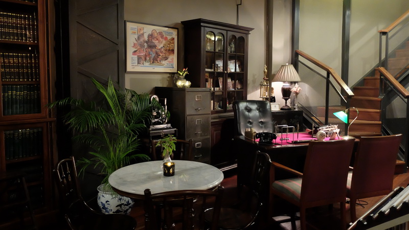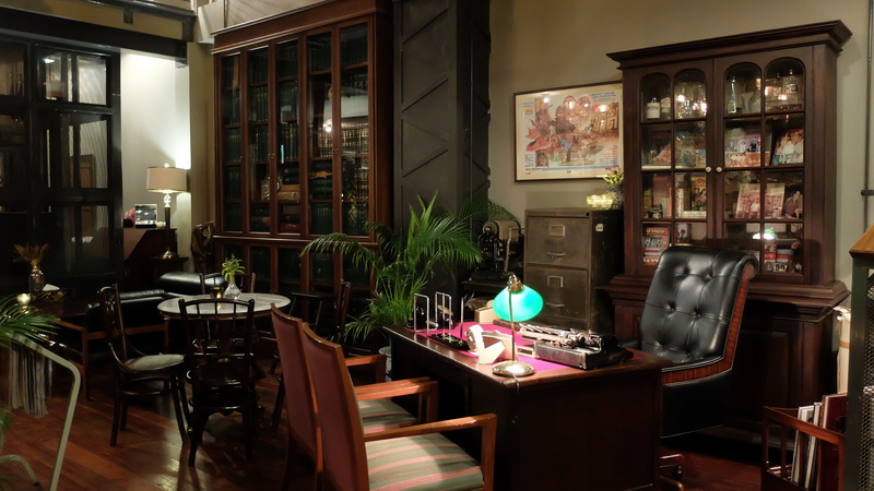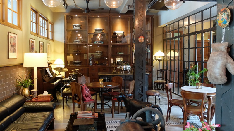 อีกด้านของ Lobby มีทั้งเปียโน กับตู้โชว์เครื่องพิมพ์ดีดตกแต่งด้วยรูปจากปกนิตยสารบางกอกกับแทนพิมพ์ต่างๆ หลังจากเชคอินแล้วพนักงานต้อนรับจะพาเราเดินชมตัวโรงแรมพร้อมแนะนำสถานที่คร่าวๆก่อนที่จะพาไปห้องพักครับ