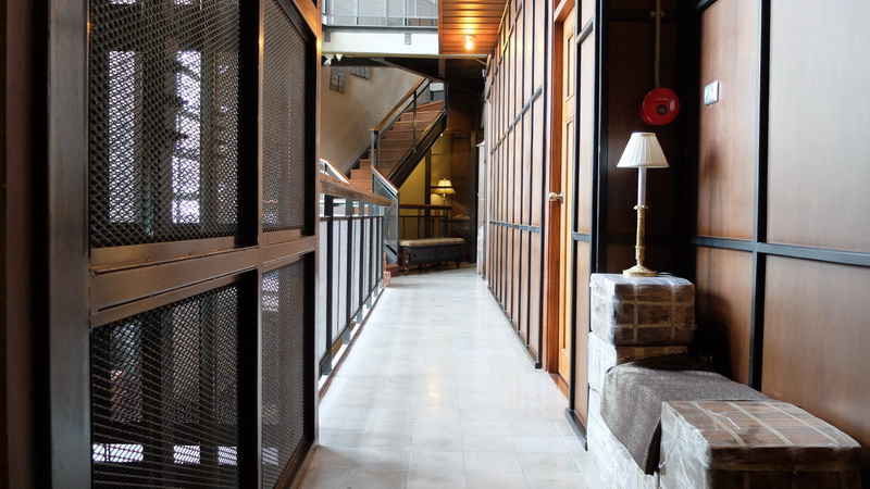 ชั้นสามทางเดินจะติดกับหน้าต่างคนละด้านกับชั้นสองที่ติดด้านห้องพัก มองลงถึงพื้นที่ชั้นหนึ่งได้พอดี