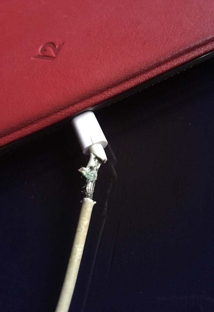 สืบเนื่องจากการใช้สายชาร์จ ที่ใช้ไปด้วยชาร์จไปด้วย ทำให้บริเวณส่วนปลายสายกับขั้วทั้งฝั่ง USB และฝั่งขั้ว Lightning มีรอยย่นหรือมีการฉีกขาด ของฉนวนด้านนอก แต่กรณีของผมเป็นการฉีกของฉนวนด้านใน ฉนวนด้านนิ